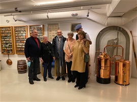 Mette, som var vores guide, var en meget snakkende (ca. 2 timer!) og vidende guide, som var uddannet både som formakon og historiker, og hun viste os ned i kælderen, hvor museet lå. Her havde man udstillet alt, hvad man kunne tænke sig af gamle beholdere til medicin, først fremstillet i keramik siden af glas, blik og porcelæn. Mette viste os, hvordan man i starten "trillede" piller, det var såre simpelt, og dem, som gjorde det, blev kaldt pilletriller. Herefter blev produktionen af piller (tabletter) automatiseret og en af maskinerne vi så, kunne producere op til 50.000 i timen. Før i tiden producerede apotekerne selv deres medicin, det er næsten slut nu og, der er idag kun ca 3 tilbage, som har egen produktion.